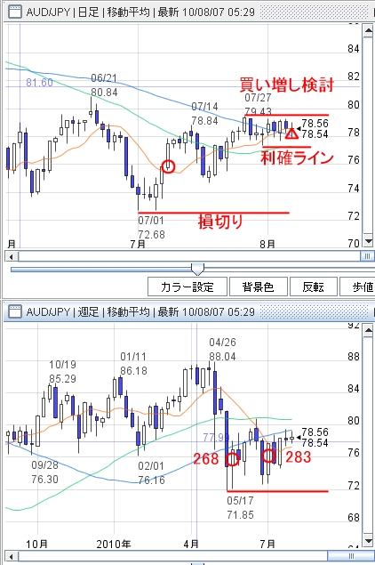 買いポジションはb269と285(メルマガでの通し番号です。)の2つ。