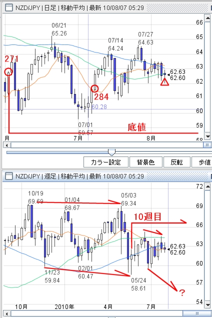 NZドル円は安値の切り下げがあった時点で