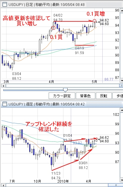 ドル円を0.1買い増し。
