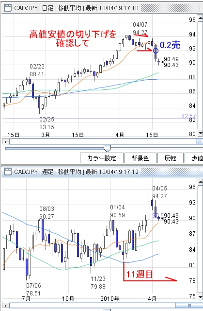 4月11日に売りで仕掛けたカナダドル円を利食いしました。