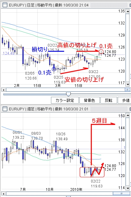 03.30.21:32 ユーロ円、売りが損切り、途転で買い。 |