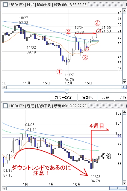 ちなみに、週足ではダウントレンドだからね。