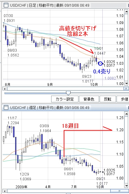 10月6日にエントリーしたドル・スイスフランの売りポジション