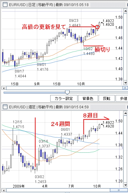 ついでに、直近高値を更新してきたら、途転買いを仕掛けます。