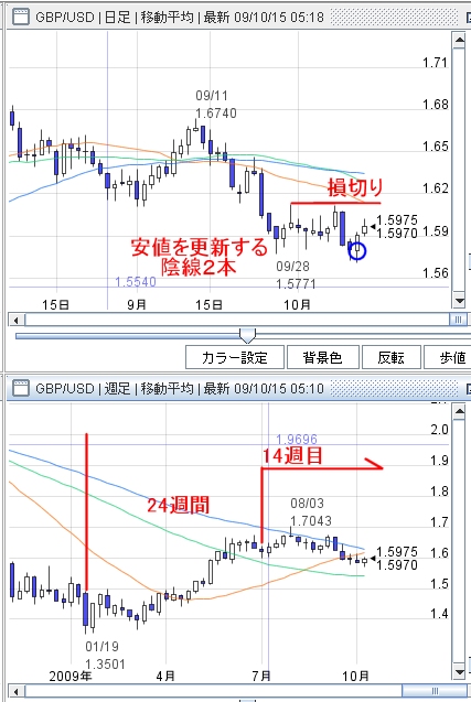 そして、今回、日足で安値を更新しました。