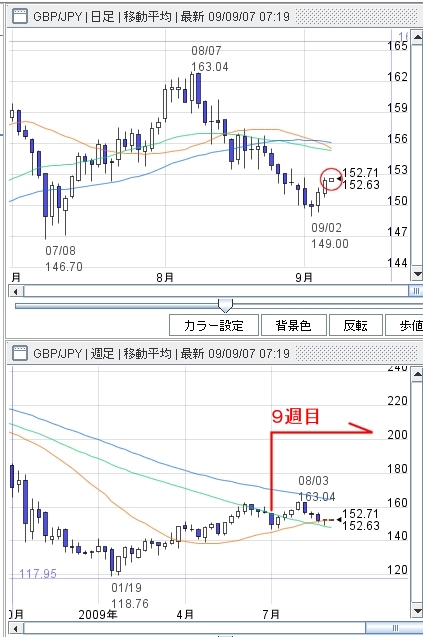 週足で9週目。