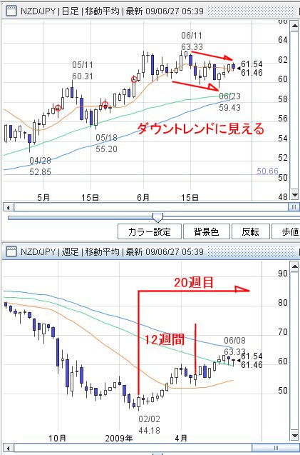陰線2本は出ていたが、高値の切り下げだけで、安値が切り下がっていなかった。