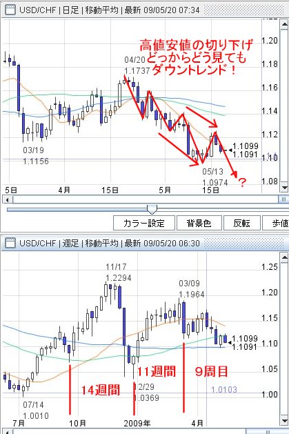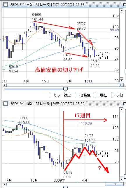 日足では高値安値を切り下げて