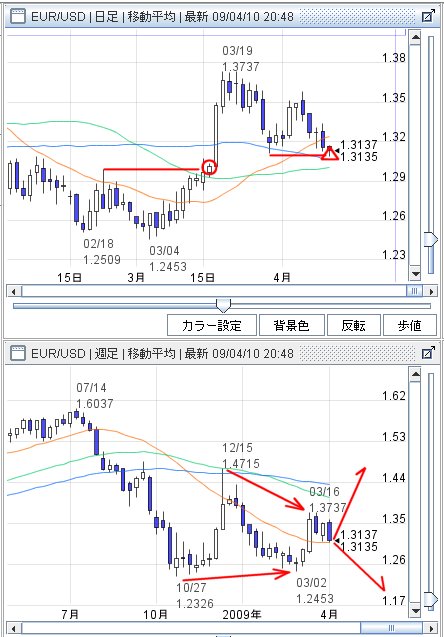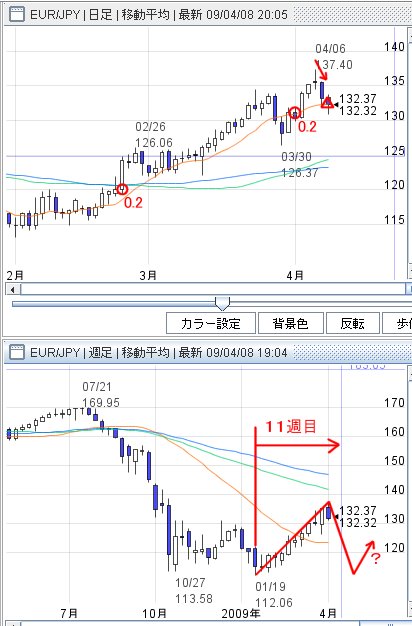 とりあえず、週足で安値を切り上げているので、アップトレンドと見ているが