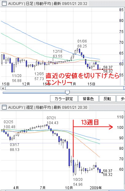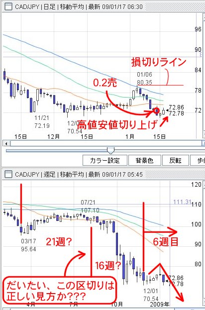 この再下落で損切りにあう。