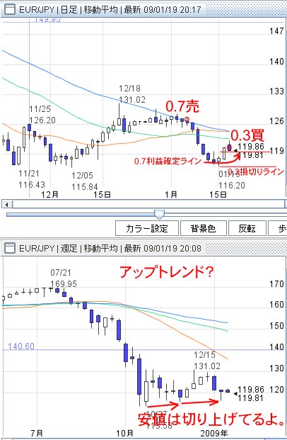 ユーロ円が損切り。途転売りでエントリー