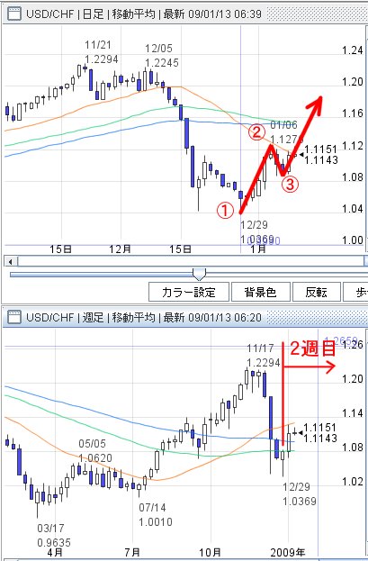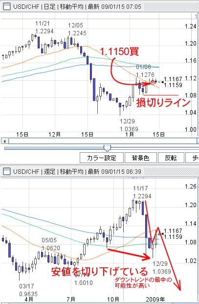 昨日エントリーしたドル・スイスフラン