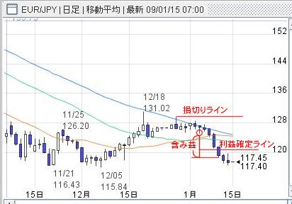 ユーロ円の損切りを利益確定に