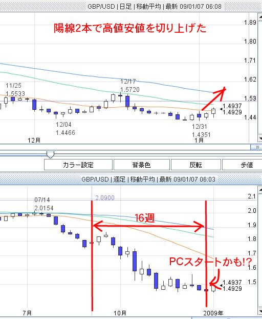 本当は、日足の2番を越えたところで