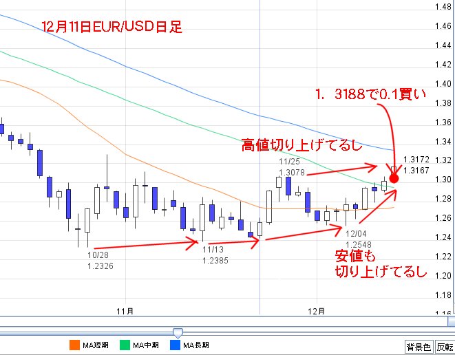 ユーロ/ドルのチャートで転換サインが出ていた。